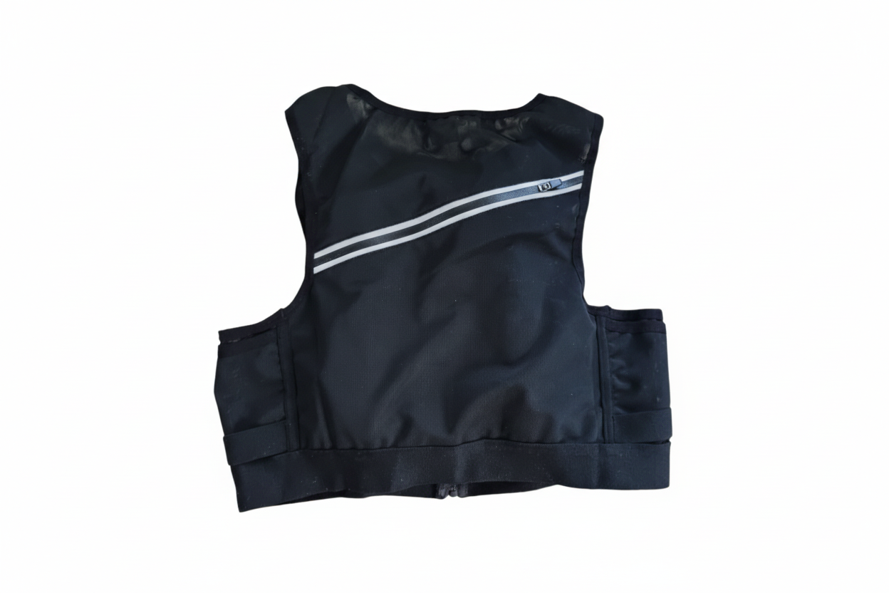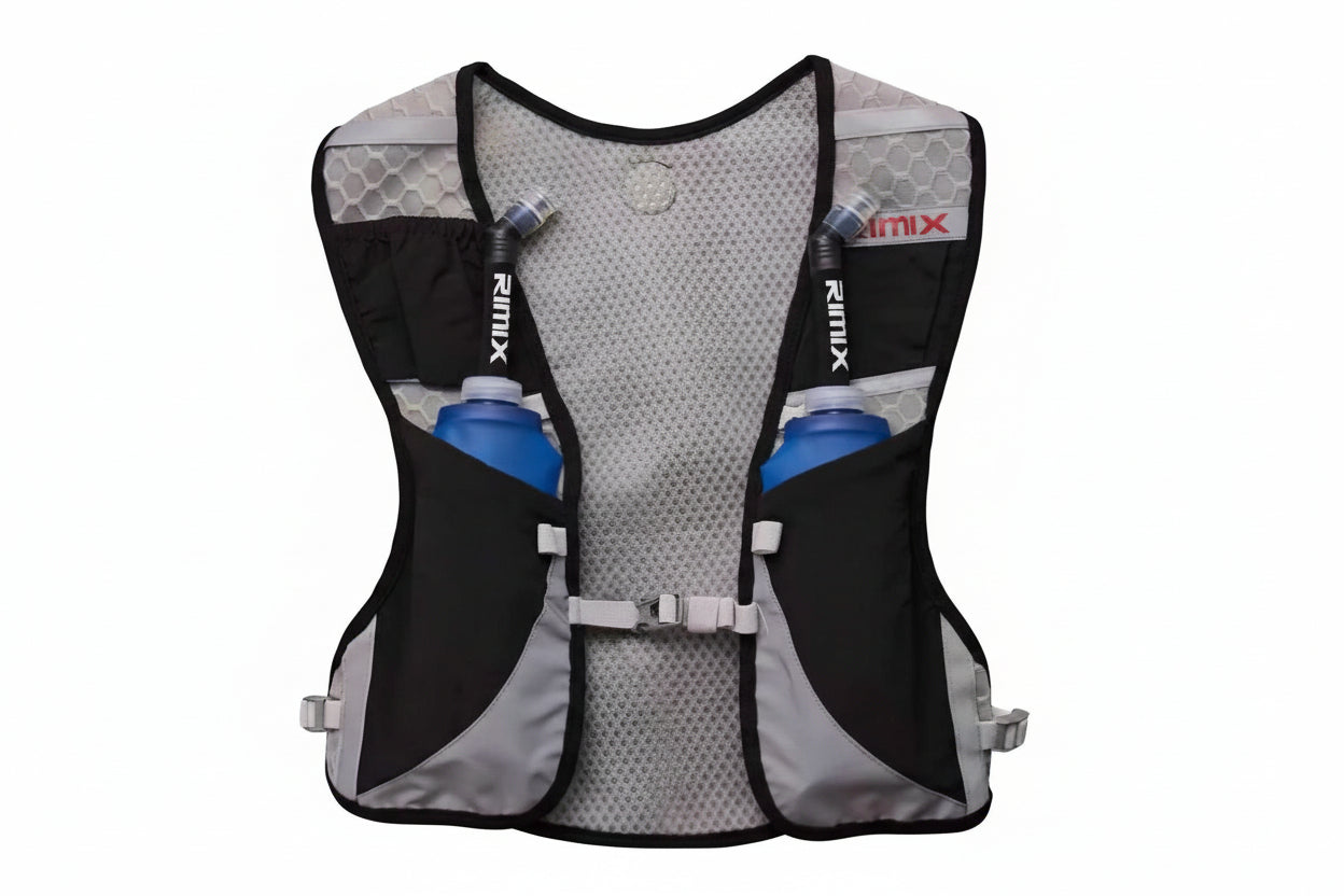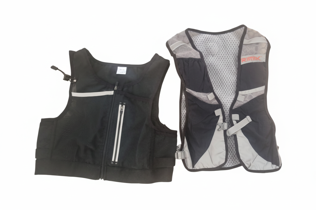 Erum með létt og þægileg vesti með plássi fyrir brúsann, símann og orkugel.