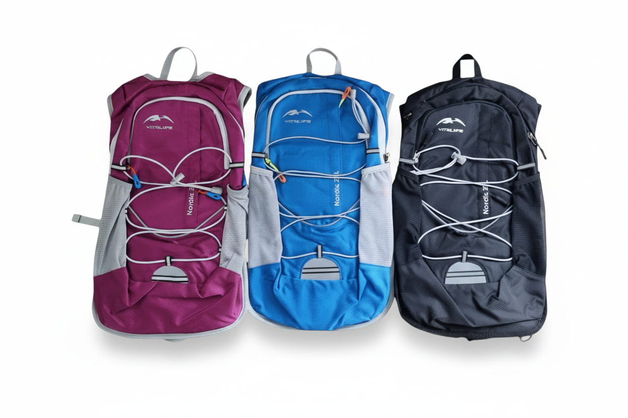 Við erum með búnaðinn sem þú þarft – létta og þægilega bakpoka, hlaupavesti og vatnsbrúsa/vatnspoka sem henta fullkomlega í útivistina.