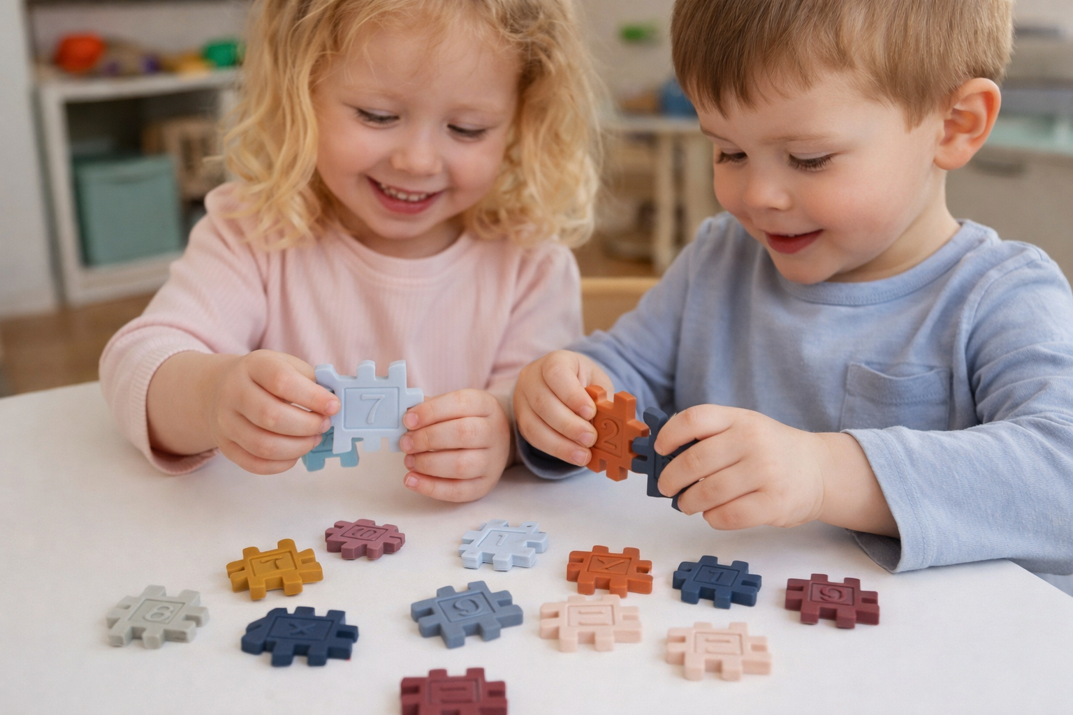 Þroskaleikfang sem þjálfar fínhreyfingar. Hægt að nýta við kennslu á tölustöfunum og reikningsaðferðum.