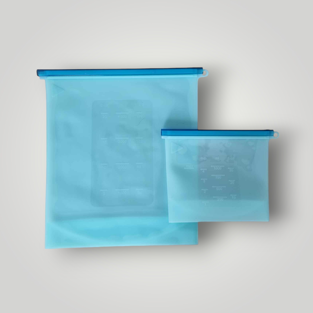 Þessir margnota silikon pokar eru mjög sniðugir til þess að geyma mat í og frysta.