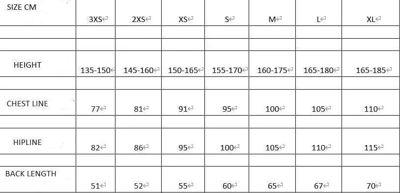 Skoðið stærðartöflu - 2XS og 3XS eru barnastærðir – Börn þurfa að hafa náð 35 kg til þess að mega nota vestin